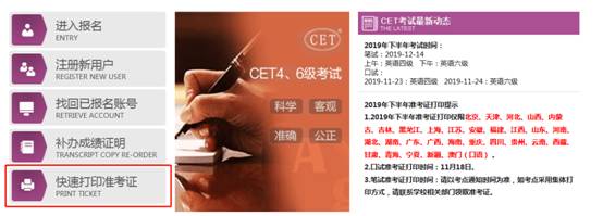 2019年下半年英语四六级笔试准考证打印于12月3日上午9点正式开始,笔试时间为12月14日,请各位考生届时登录全国大学英语四、六级考试网站打印准考证。