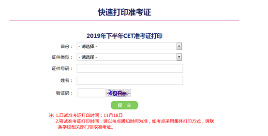 输入省份、证件类型、证件号码、姓名等信息即可打印准考证。