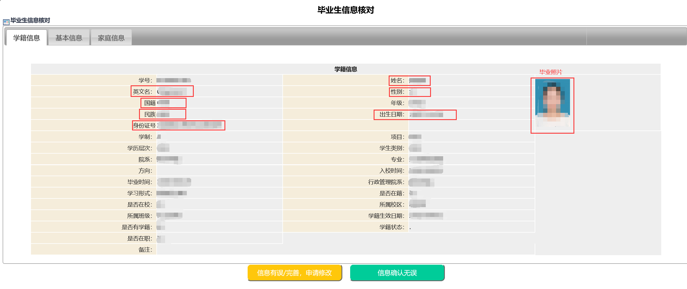 1.中国学生核对内容:姓名、性别、出生日期、民族、身份证号、毕业照片。