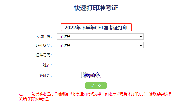 1.登录大学英语四六级考试报名网站 http://cet-bm.neea.edu.cn ,点击“快速打印准考证”一栏。