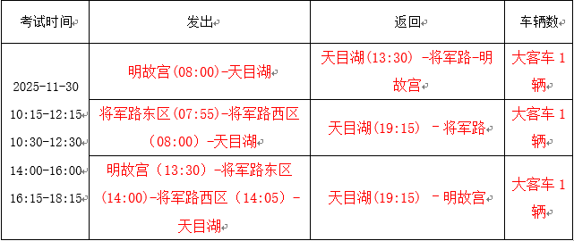 2025年11月30日,我校在天目湖校区举行课程考试,请通知监考人员按时乘坐班车,参加监考,保障考试顺利进行。