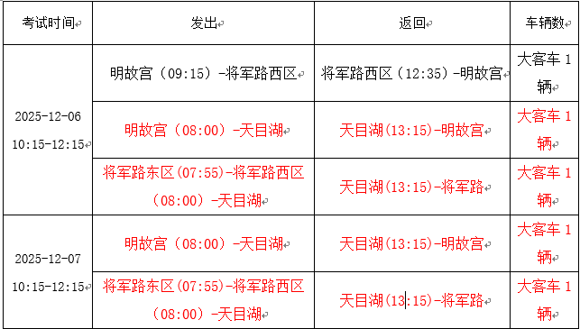 监考班车具体时间如下: