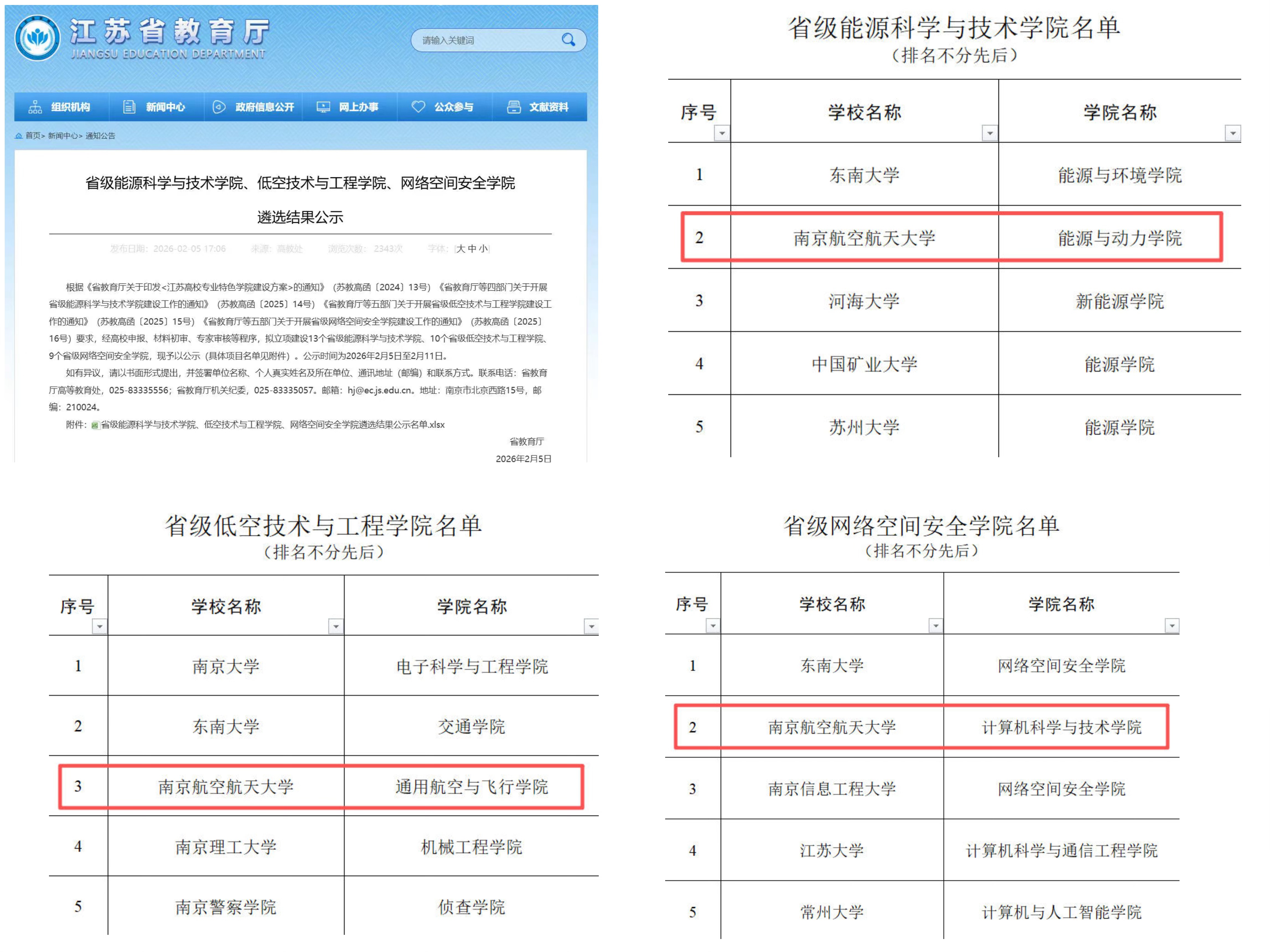近期,江苏省教育厅公布了新一轮省级专业特色学院立项建设名单。我校申报的省级能源科学与技术学院、省级网络空间安全学院、省级低空技术与工程学院全部成功入选,此次全省共立项建设省级能源科学与技术学院13个、省级低空技术与工程学院10个、省级网络空间安全学院9个。