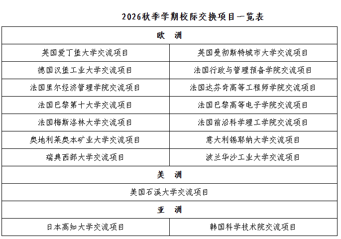 根据我校与境外高校签订的交换生协议,现正式启动2026年“南航-英国爱丁堡大学交流项目”等20个校际交换项目选拔流程,被选拔上的同学将于2026秋季学期或者2027春季学期出国(境)交流学习,总交换生名额为117名。