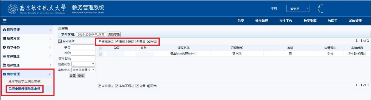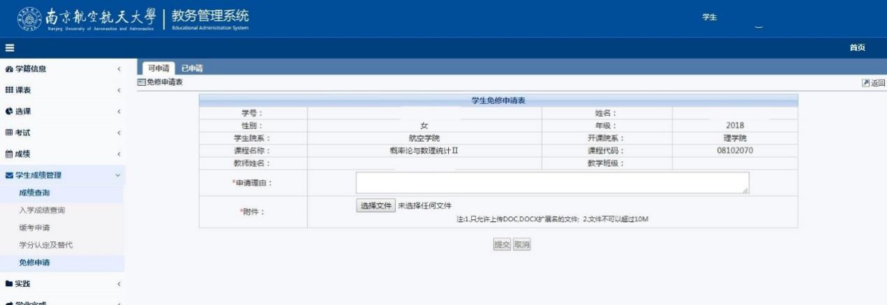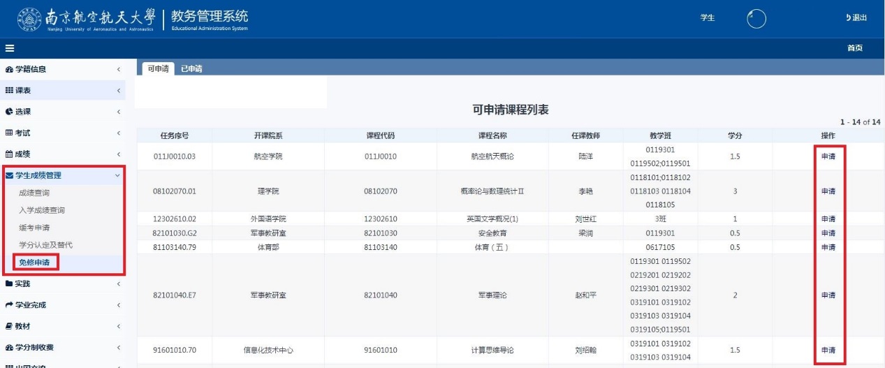 (1)3月9日—3月13日,学生在教务系统中申请免修课程,申请流程: