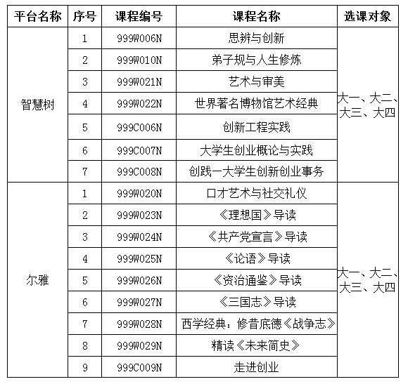 3.选课方式:学生可根据自身兴趣爱好选择相应课程(课程简介详见附件1)进行修读,每人限选一门,先选先中。