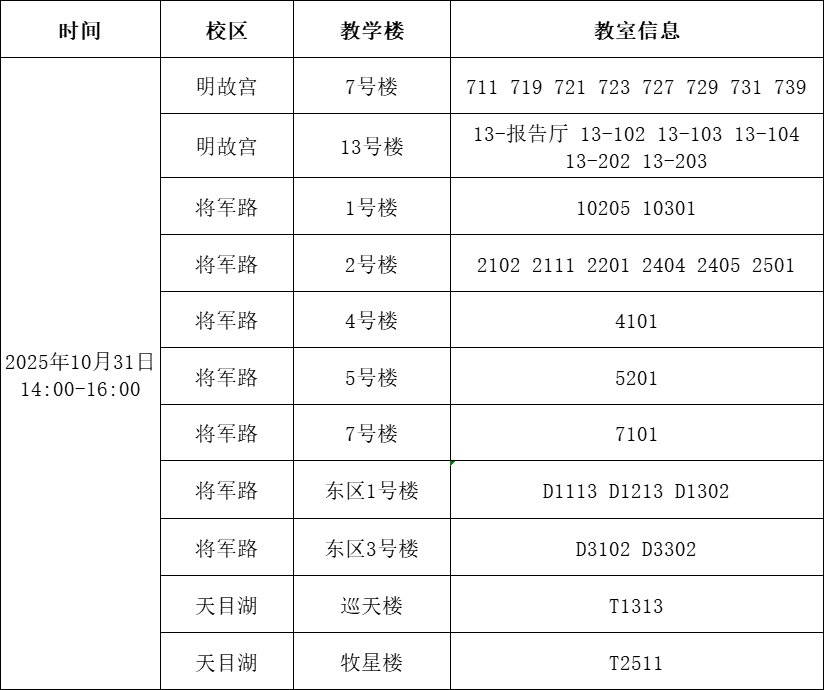 为保障全校师生党员教育培训顺利开展,10月31日(本周五)校内部分教室将用作分会场,具体安排如下: